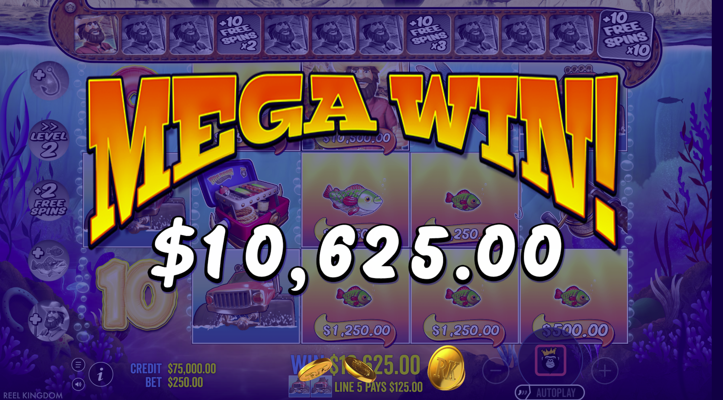 - Persistent Fisherman Wild: During free spins, Fisherman Wild remains fixed on reel 5 ensuring guaranteed collections